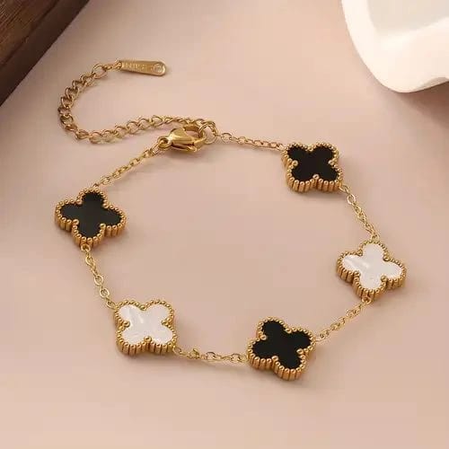 This charming clover bracelet features a delicately crafted four-leaf clover motif, symbolizing luck and positivity. Designed with elegance and subtle sparkle, it adds a graceful touch to any outfit. Made with 18K gold plating and anti-tarnish coating, this bracelet ensures long-lasting shine and durability. Lightweight and comfortable, it’s perfect for daily wear, gifting, or special occasions.